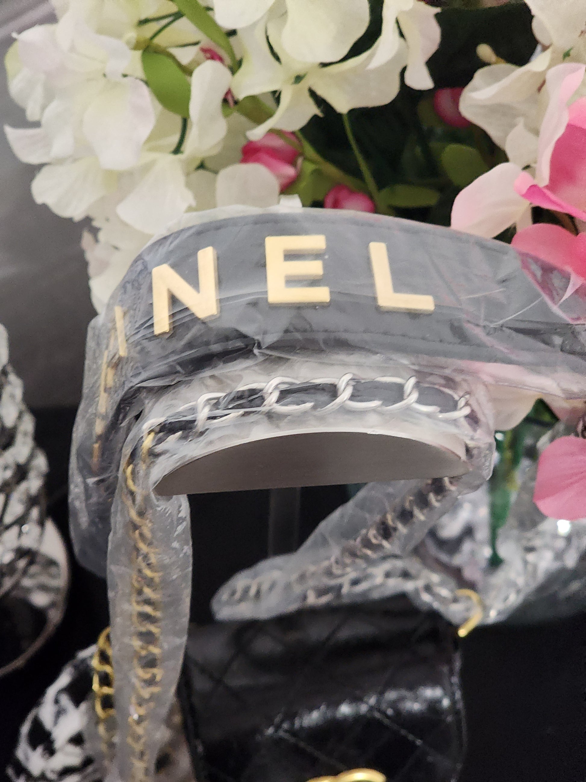 Style 1 is a Soft Black Leather C with Gold Hardware Mini that has a Cute Handle for Carrying or a Long Strap to make into a Crossbody. Lipstick check Mirror inside!!