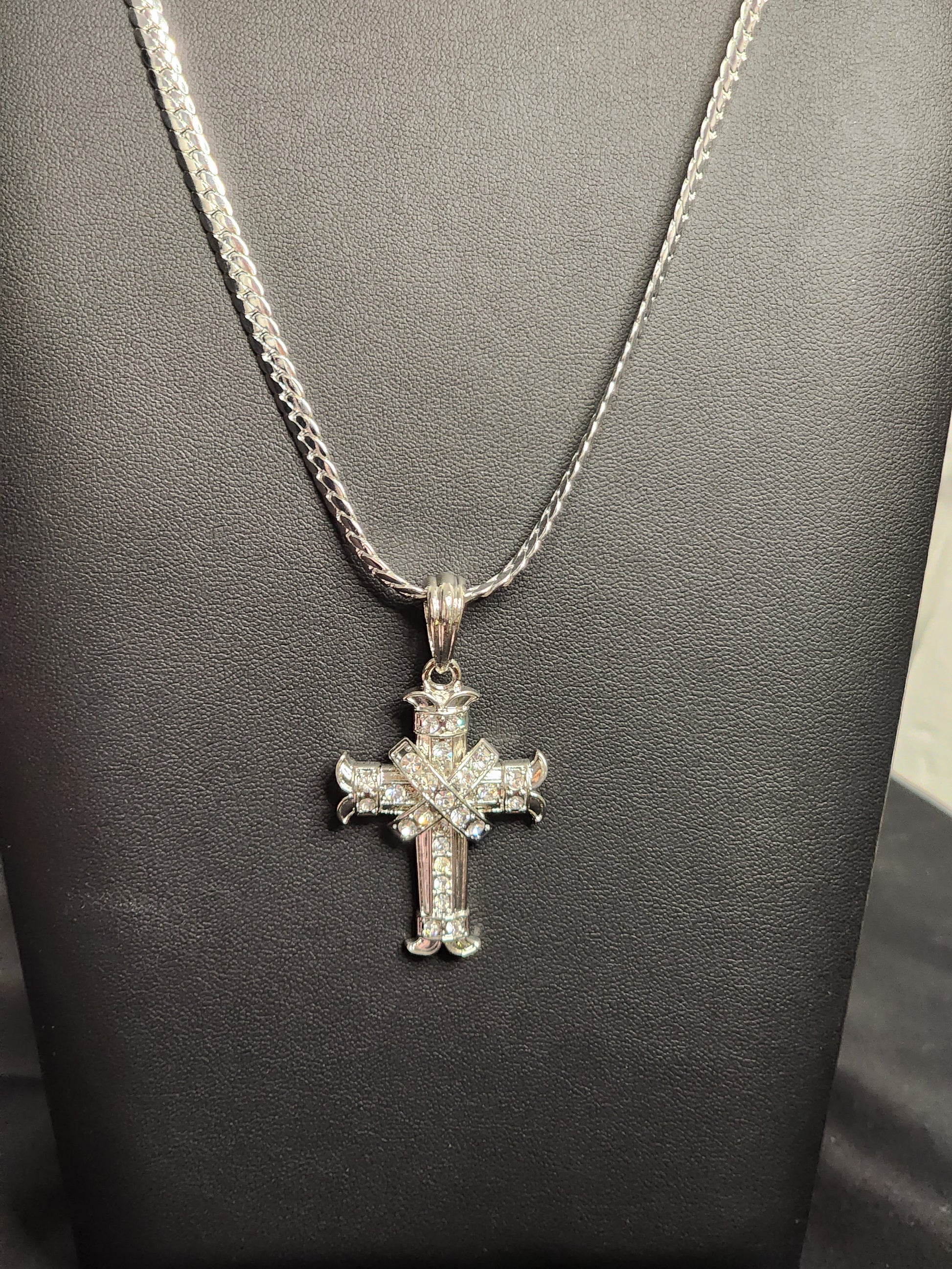 These are Beautiful Unisex Stainless Steel Gold or Silver almost 2inch Cross Pendants with Rhinestones on 19inch Stainless Steel Chains.