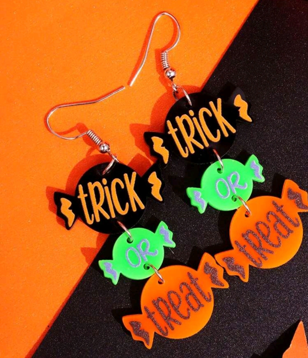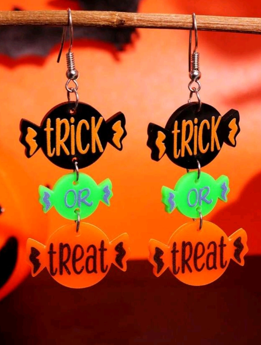 These are 2.5 inch Dangly Trick or Treat Candy Shaped Halloween Acrylic Earrings!