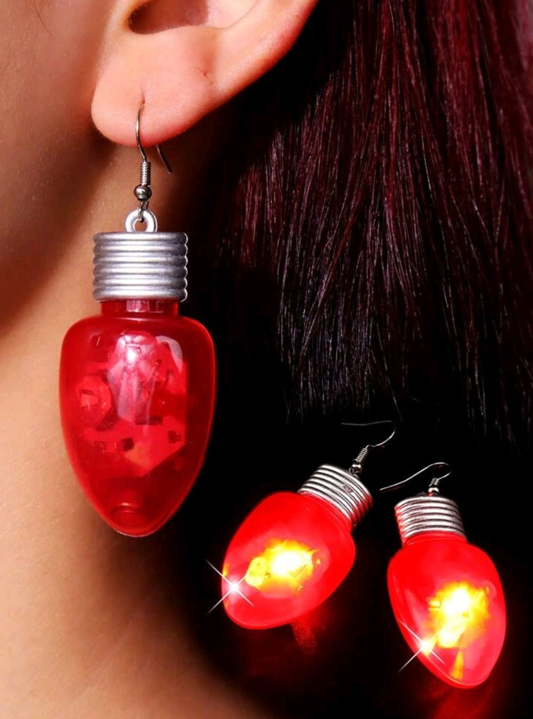 OMG These are just the Cutest Light Up Christmas Bulb Earrings, Available in Red or Green Bulbs or Christmas Trees they are Plastic and Alloy and YES they Light Up! 2 inches