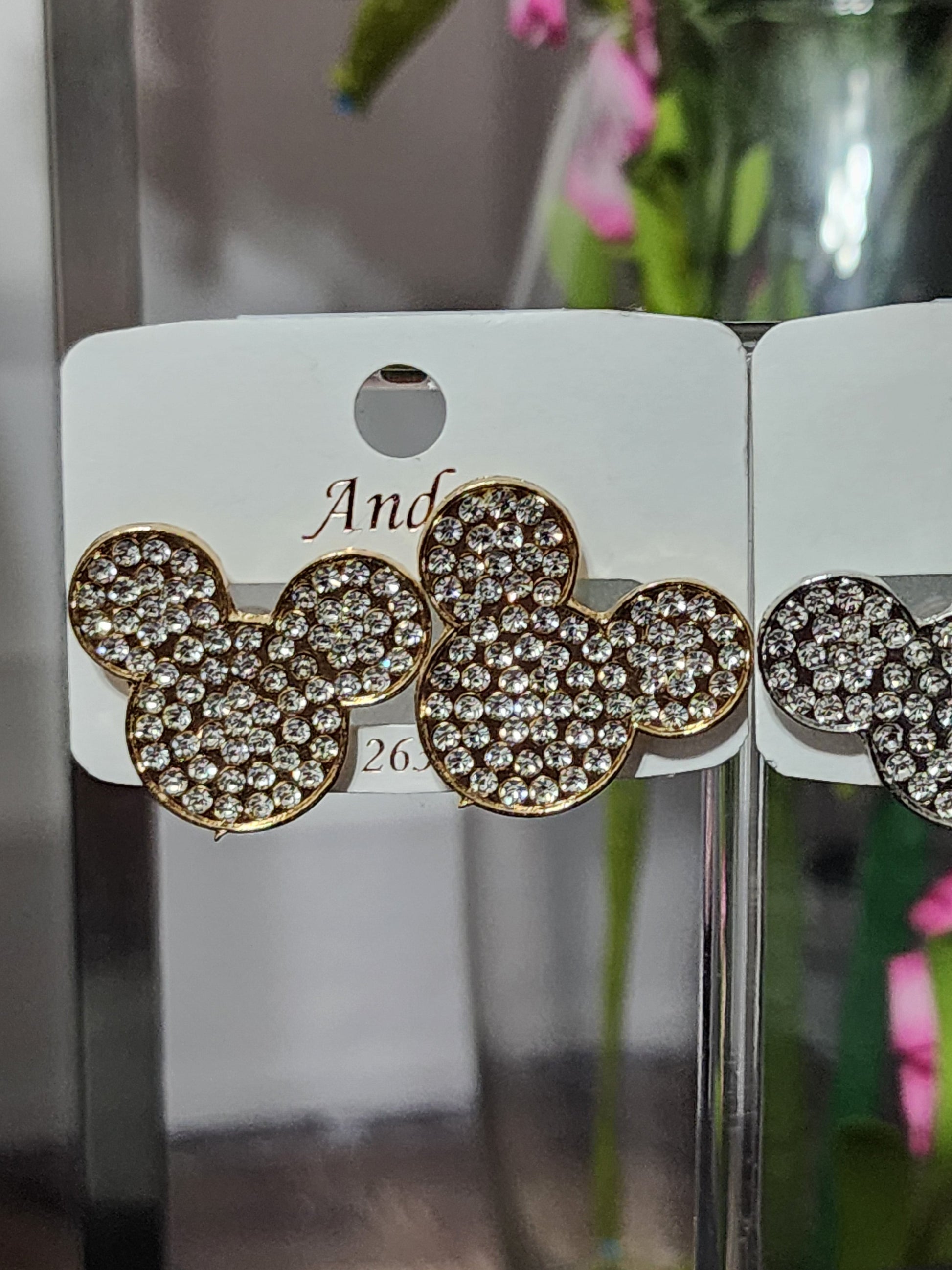 These are the Cutest 1inch Full Rhinestone Mickey Mouse Gold or Silver Earrings!