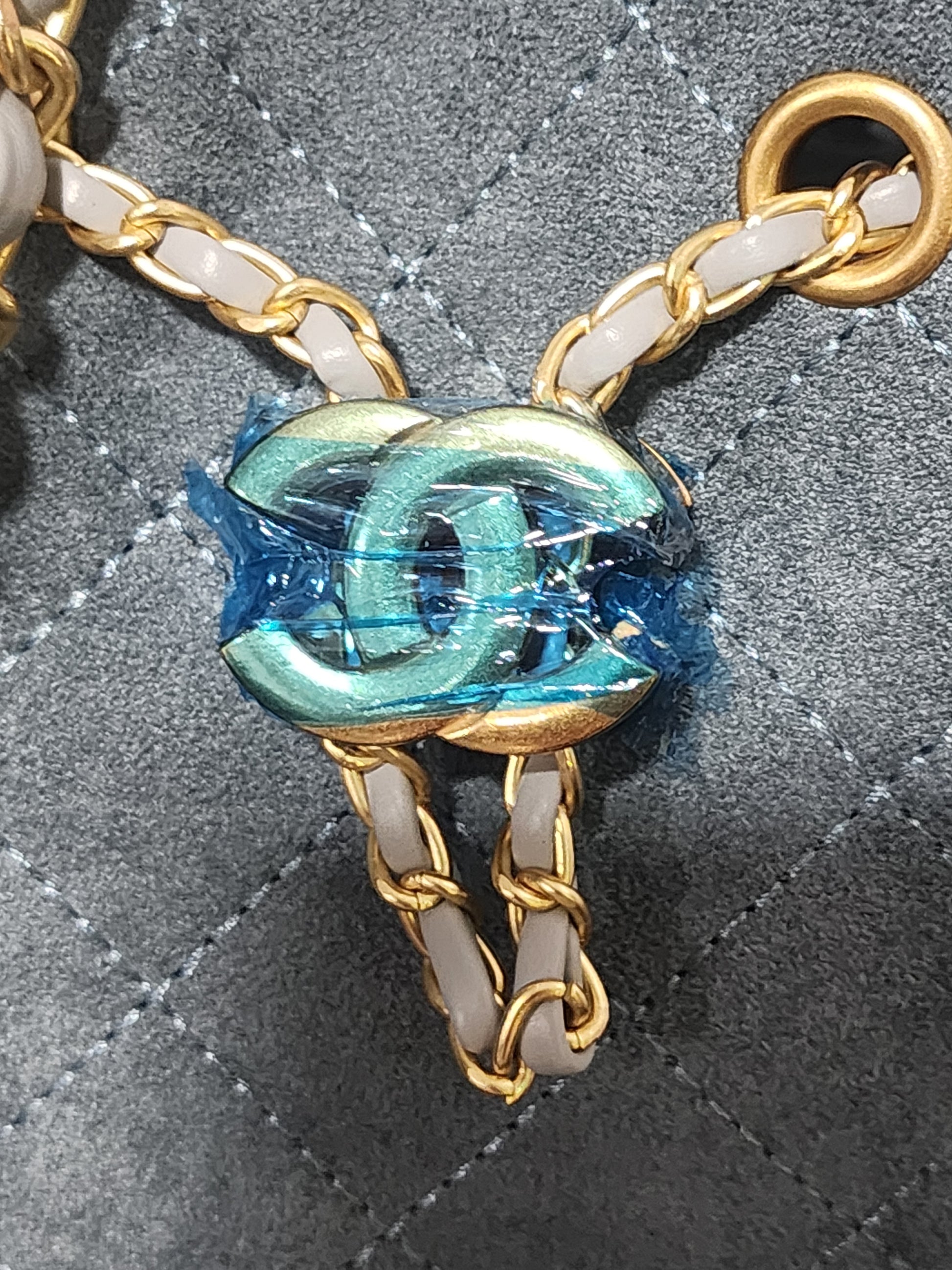 This is a Gorgeous Blue Suede Bucket Style Stamped Handbag with Gold Stamped Hardware! This is a Gorgeous Bag.Her front C pushes down to let the Strap go in or out she can become a Bucket Handbag.